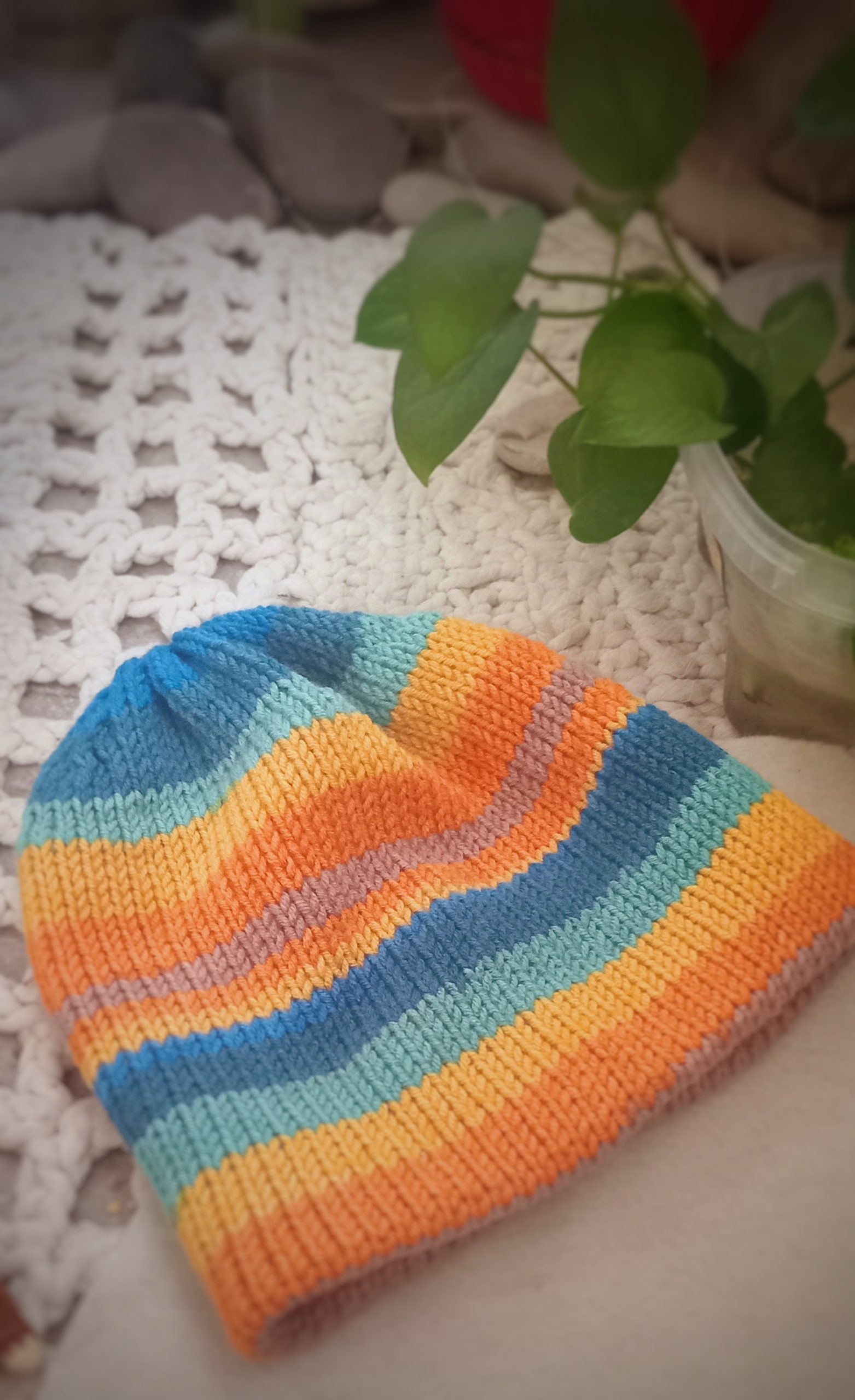 کلاه دولایه رنگی با کاموای ترک چند رنگ بافته شده و کمی جابجایی رنگها در سفارش جدید اجتناب ناپذیر است.