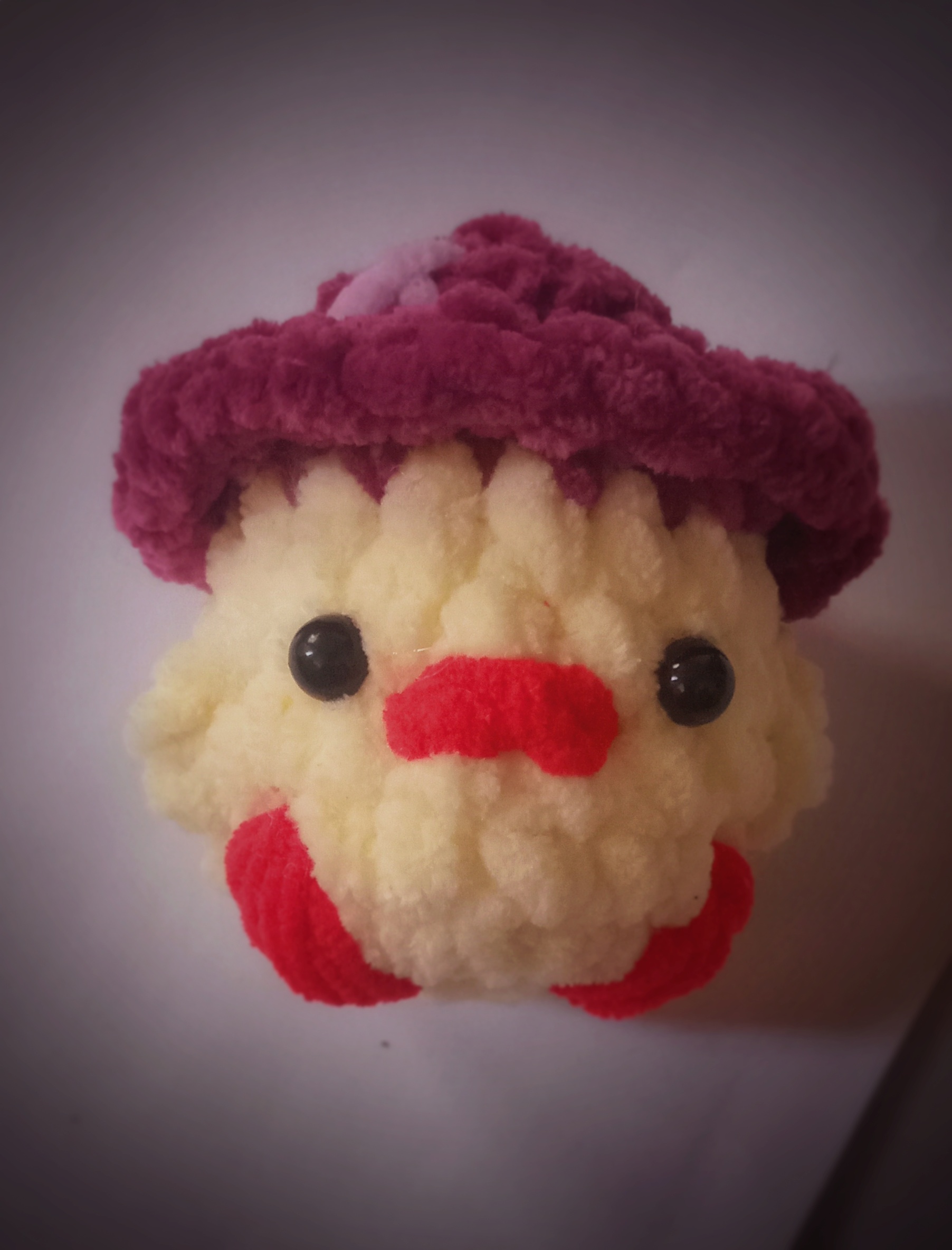 عروسک جوجه مخملی کلاه بنفش