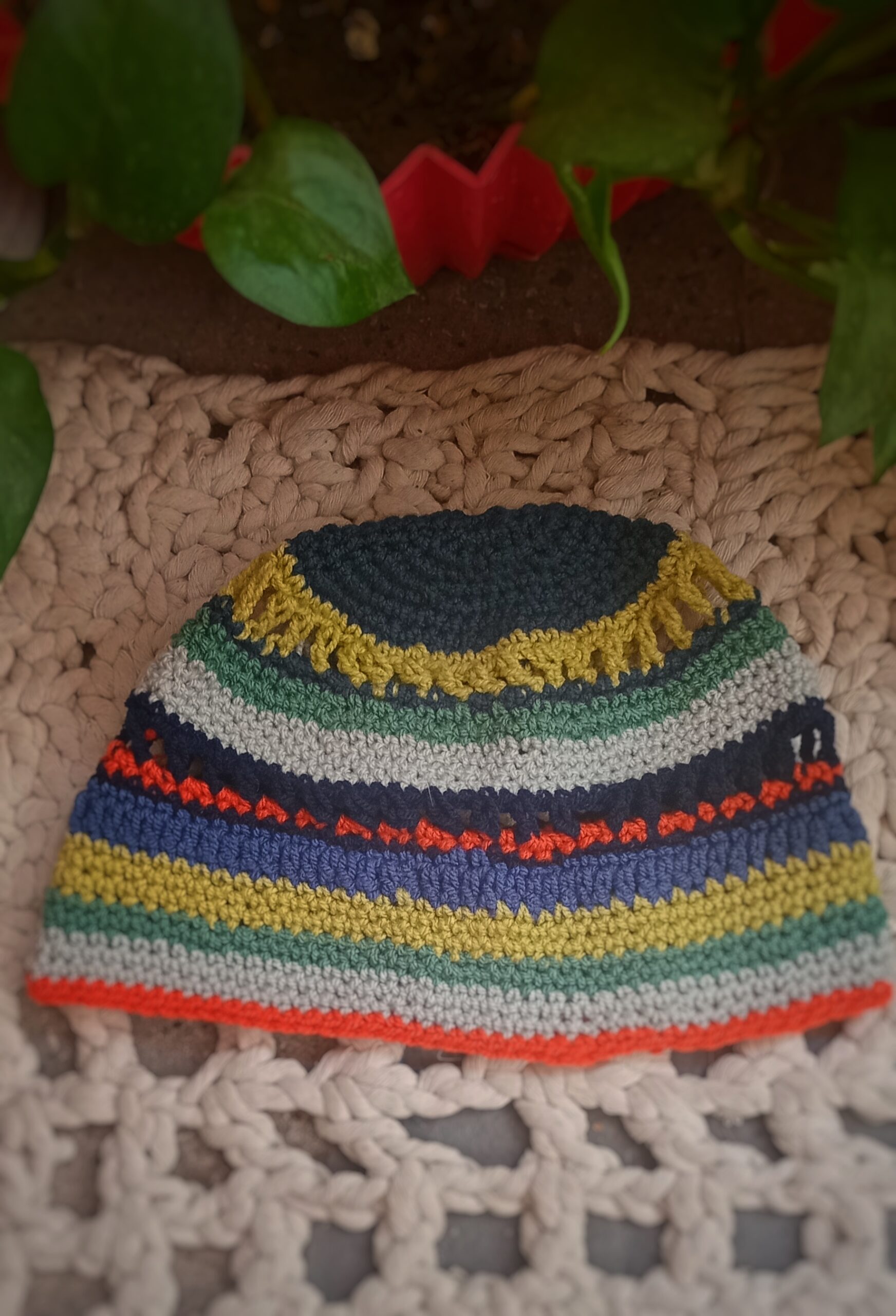 🧶تمامی بافتها دستبافت می‌باشد.و این کلاه با نخ ایرانی مرغوب بافته شده است.