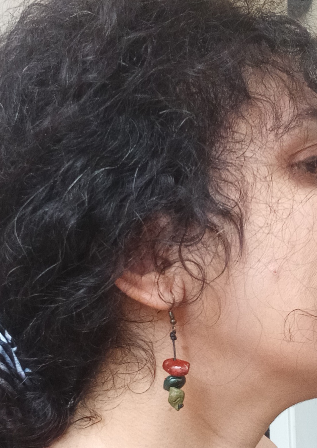 گوشواره سفالی از قطعات نامنظم سفال تشکیل شده و مناسب خاص پسندان است.